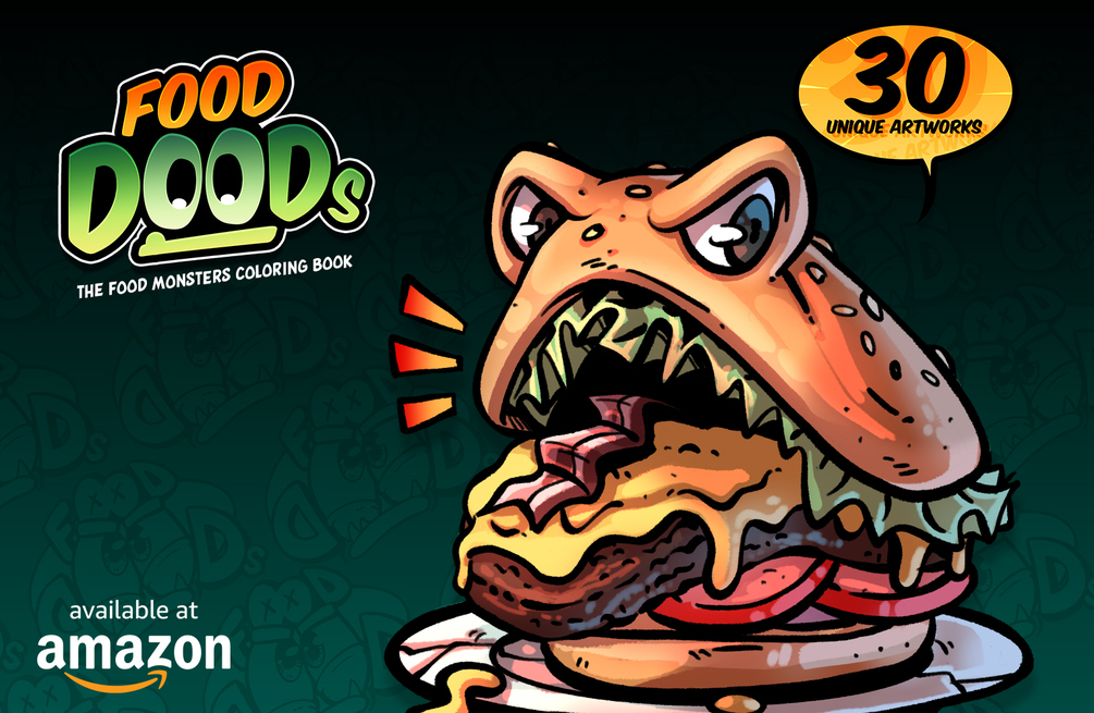 This whacky teen and adult coloring book features 30 unique Monsters based on popular food products from around the world. Food Doods introduces you into a new and crazy world where the Food wants to eat you! The book let's you decide the name, strengths and weaknesses of each individual monster - sometimes you even get to add your own text or drawings to complete a scene, allowing you to create your own world of crazy food monsters!