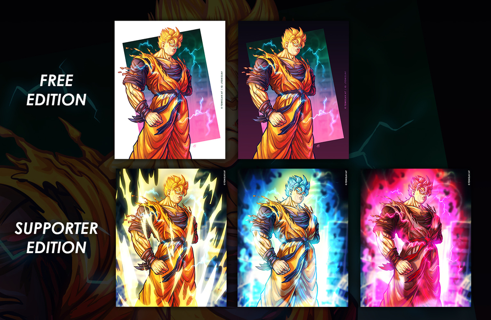 - SUPPORTER EDITION: 5x Wallpaper (1x Light, 1x Dark, 1x Full Power Super Saiyan, 1x Super Saiyan Blue, 1x Super Saiyan Rosé)